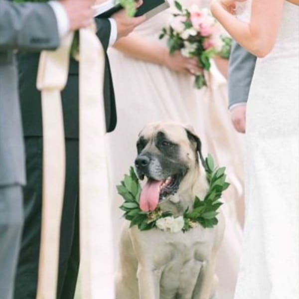 If your pet is well-trained, have them walk down the aisle as the “flower girl” or “ring-bearer”. This will be an adorable sight for your guests and is an amazing way to include your four-legged family member on your special day.