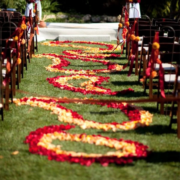 Line the aisle with flower petals right before the ceremony. Have the petals arranged into your initials, a heart or any other design.