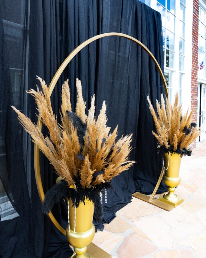 Décor Ideas: Candlesticks add vintage elegance and ambient lighting, while gold palms bring in the opulence and drama of the Art Deco era. Beads and feathers can be draped over tables or used in centerpieces. Decorative urns add elegance especially when filled with feathers or florals. Twinkle lights capture the glitz and sparkle of a Gatsby-style celebration.